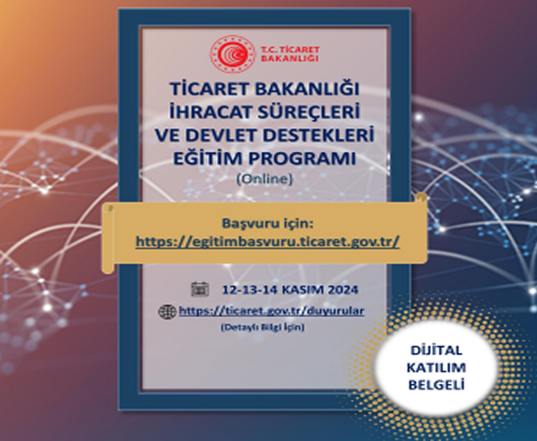 23-24-25 Eylül 2025 tarihlerinde “Ticaret Bakanlığı İhracat Süreçleri ve Devlet Destekleri Eğitim Programı”, görsellerde verilen program akışı çerçevesinde çevrim içi olarak düzenlenecektir.